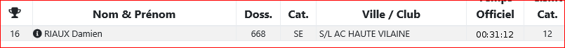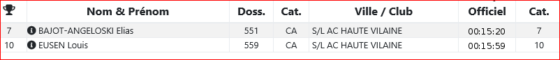 Félicitations à Christian pour son podium de la catégorie M4 et à Tony pour la catégorie M2